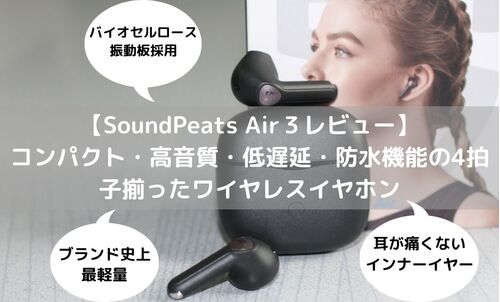 高音質と通信の安定性、防水性を両立し、コスパの良いワイヤレスイヤホンを探している方へ向けて、SoundPeats製の「Air3」の実機レビューを紹介します。「Air3」はVGP 2021 ECコスパ大賞・部門金賞に輝く「TrueAir2」をベースとし、φ14.2mmバイオセルロース…